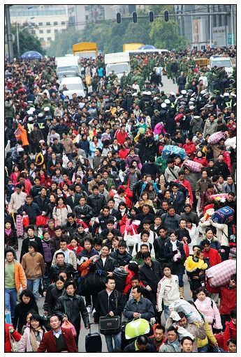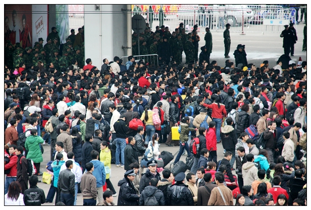 火车站的广场上,站满了数万数十万渴望回家的人们。他们披星戴月,他们风餐露宿,他们饥寒交迫的站在广场上,密密麻麻一眼望不到边,每个人都是那样的焦急,他们是最底层的中国人,他们只有最简单渴望回家的愿望,却无人给他们帮助。既然他们买不起飞机票,于是他们就注定命如蝼蚁,注定命贱如草,这不仅仅是他们的命运,也是我们的命运,是千千万万中国同胞的命运。