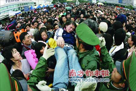 1月13日,安徽芜湖安徽师范大学外国语学院大三学生冷静(音)在芜湖火车站在拥挤的人流中被挤下站台,被还没来得及停稳的火车当场轧死。2日2日3时,广州市公安局发布消息称,一名湖北籍外来务工人员在广州火车站等候车辆时被人流挤迫倒地后,于2日凌晨经抢救无效死亡。