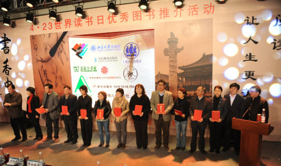 新华网北京4月23日电(王志艳 史靖 赵辉) 今天是“世界读书日”,上午,国家图书馆举办了“书香中国·阅读让人生更美好——4·23世界读书日优秀图书推介活动”,活动中发布了第八届文津图书奖的评选结果,《资中筠自选集》、《论中国》、《落脚城市》等十种在2012年广受关注的图书获得殊荣,另有58种图书荣获推荐读物。获奖作者资中筠、金波等人亲临现场,同期出席的还有文化部、国家图书馆等机构的相关领导及学者。